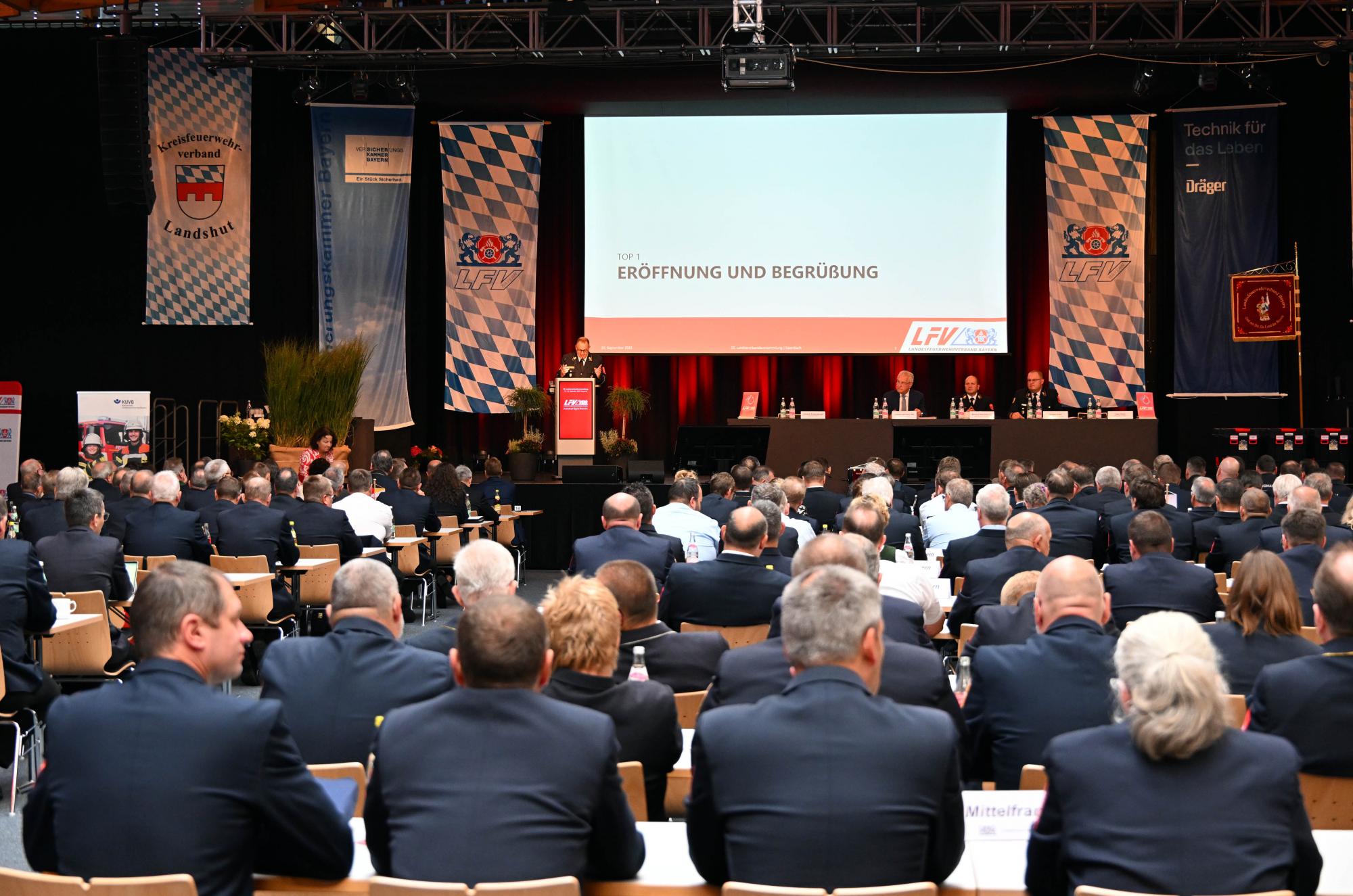Am vergangenen Freitag und Samstag wurden zum 32. Mal rund 500 Feuerwehrführungskräfte aus ganz Bayern und Ehrengäste aus Politik, Wirtschaft und weiteren Verbänden zur Landesverbandsversammlung des LFV Bayern in Essenbach (Landkreis Landshut) erwartet. Die Landesverbandsversammlung ist das wichtigste Organ des LFV Bayern: zusammen mit dem Landesverbandsausschuss und dem Landesverbandsvorstand gehört sie zu den drei beschließenden Organen des rund 960.000 Mitglieder umfassenden Verbandes.