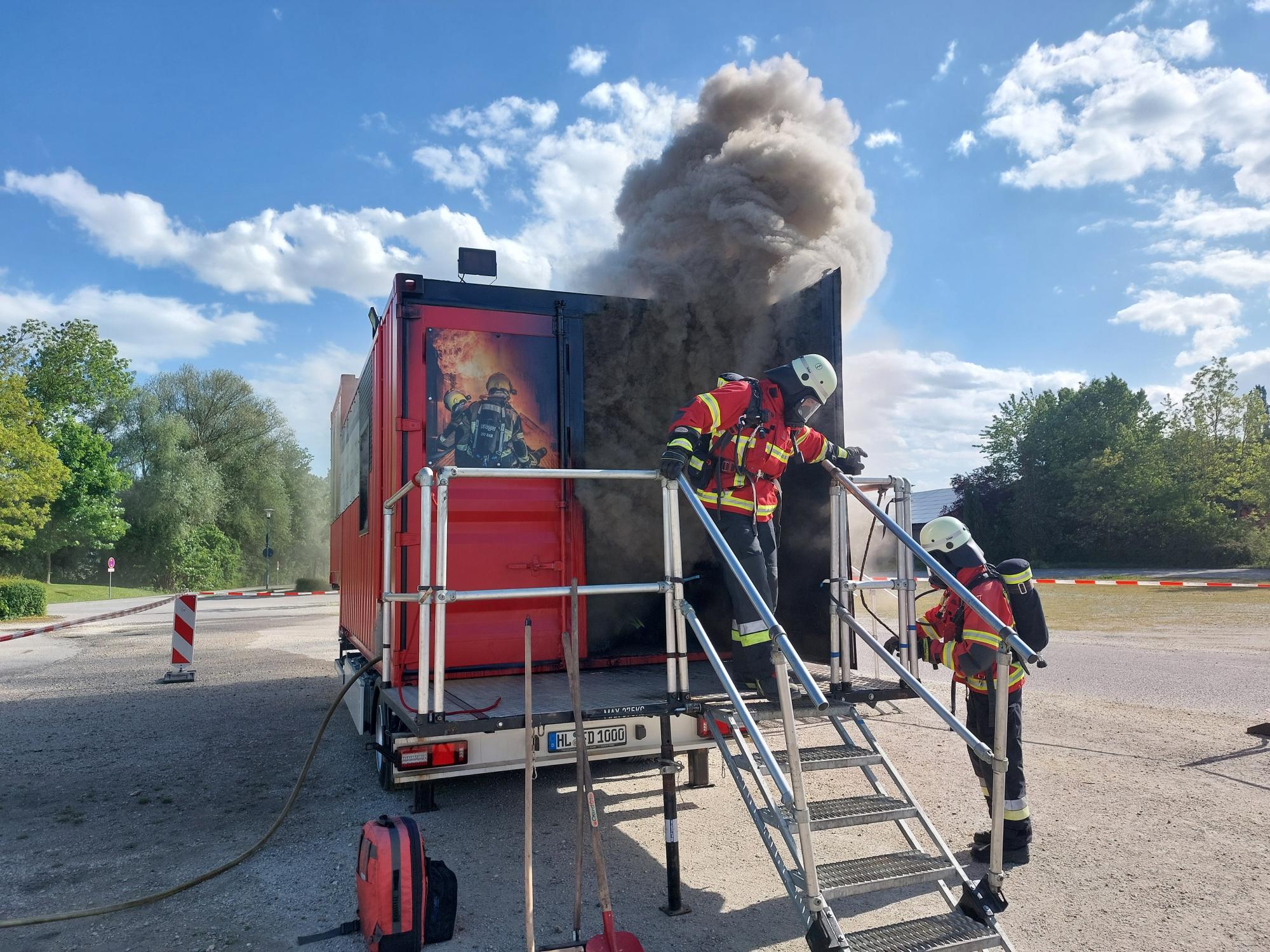 Dichter Rauch war mehrmals vom 13. bis 17. Mai 2025 in Wörth über dem Gelände der Isarhalle zu erkennen. Die Ursache war hier der Brandübungscontainer des Landesfeuerwehrverband Bayern e.V., welcher der Kreisbrandinspektion Landshut wieder zugewiesen wurde. Die Firma Dräger betreibt den, vom Freistaat Bayern finanzierten Container, der in Zusammenarbeit von den Ausbildern der Firma "Red Line Solution" betrieben wird. In dieser Woche konnten wieder 56 Atemschutzgeräteträger (16x BBZ Nord, 28x BBZ Mitte, 12x BBZ Süd) hervorragend ausgebildet werden.