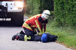 Der Unfallverursacher verließ noch vor Eintreffen der Rettungskräfte unter Schock die Unfallstelle und brach in einer Wiese anschließend zusammen. Auch er konnte im Übungsverlauf gerettet und einer medizinischen Betreuung zugeführt werden.